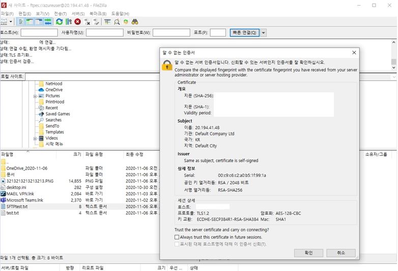 SFTP와 차이점=SFTP는 SSH를 이용, FTPS는 인증서를 이용한 FTP+SSL 구성